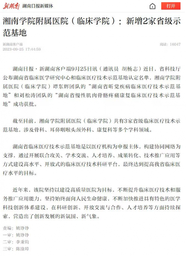 新湖南报道 bb贝博艾弗森官网附属医院(临床学院):新增2家省级示范基地