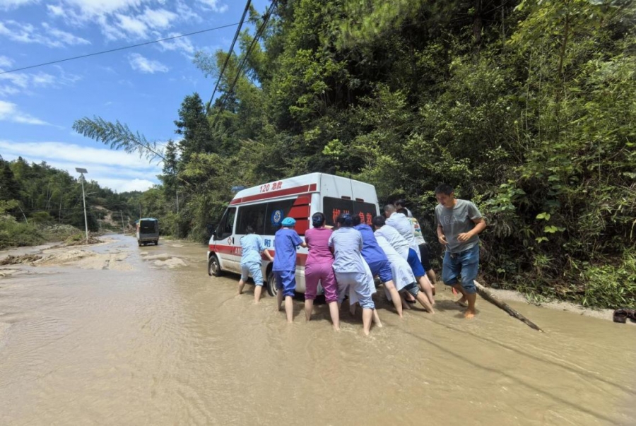 但部分通往村子的道路已被洪水冲毁,周青敏只能带领医疗队背着药箱、带着仪器弃车攀行。被洪水冲毁的道路崎岖而危险,大坑小凹,高低不平,两旁就是湍急的河流,步步艰难。走到中途,连小路都被塌方的泥土掩埋,只能靠救援的挖掘机帮忙开路。