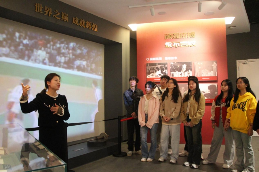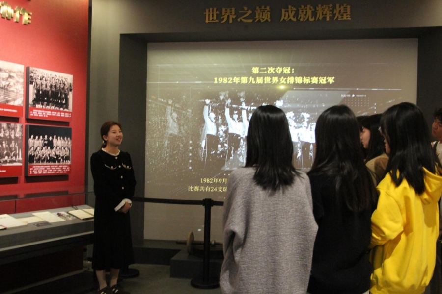 在博物馆的展厅内,师生们首先参观了中国女排的荣誉展览。展览通过丰富的图片、视频和实物,展示了中国女排自成立以来所取得的辉煌成就以及背后的艰辛付出。在参观过程中,大家被中国女排顽强拼搏、为国争光的感人事迹所深深打动。