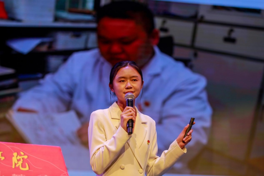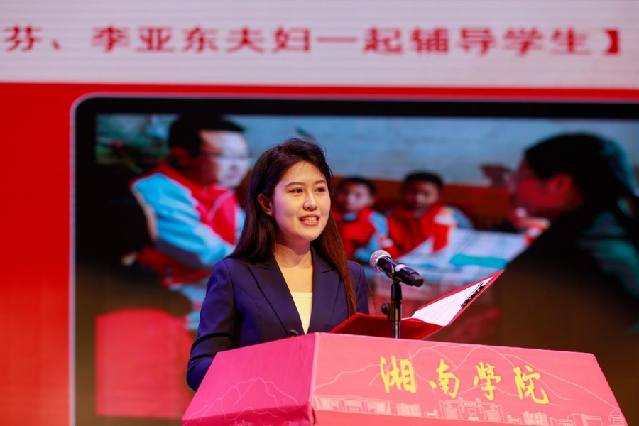 “故事的开篇,要从一个数字说起——14年。”音乐学院2023级播音与主持专业一班学生赵轩缇围绕“扎根”“创新”“传承”三个关键词,讲述了贝博校友、汝城县文明瑶族乡第一片小学教师朱细芬和李亚东夫妇坚守革命老区14年、投身基础教育事业,创新思政和红色教育形式、激发学生学习热情,牢记嘱托传承红色基因、助力红色教育发展的事迹。她目光坚定地说:“让我们以朱细芬和李亚东老师为榜样,坚守初心,勇于担当。”