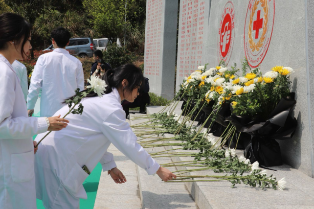 朗诵结束后,全体人员手持白菊依次走向纪念碑献花,以最朴素的仪式表达对生命使者的追思。