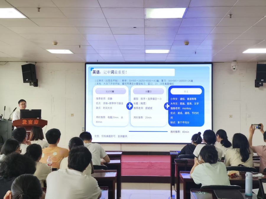 上岸暨南大学的曾丽丹聚焦时间管理分享了高效背诵专业课和提升英语能力的方法;上岸广东药科大学的雷宇晴聚焦心态调整,分享了在备考期间遇到的困难和挫折如何通过调整心态克服这些问题,建议合理休息以保持状态;上岸江南大学江小雷则从院校的招生政策和历年录取情况分享了择校的重要性,建议同学们在选择时要充分考虑自己的兴趣、专业基础和未来职业规划,并提前准备复试。