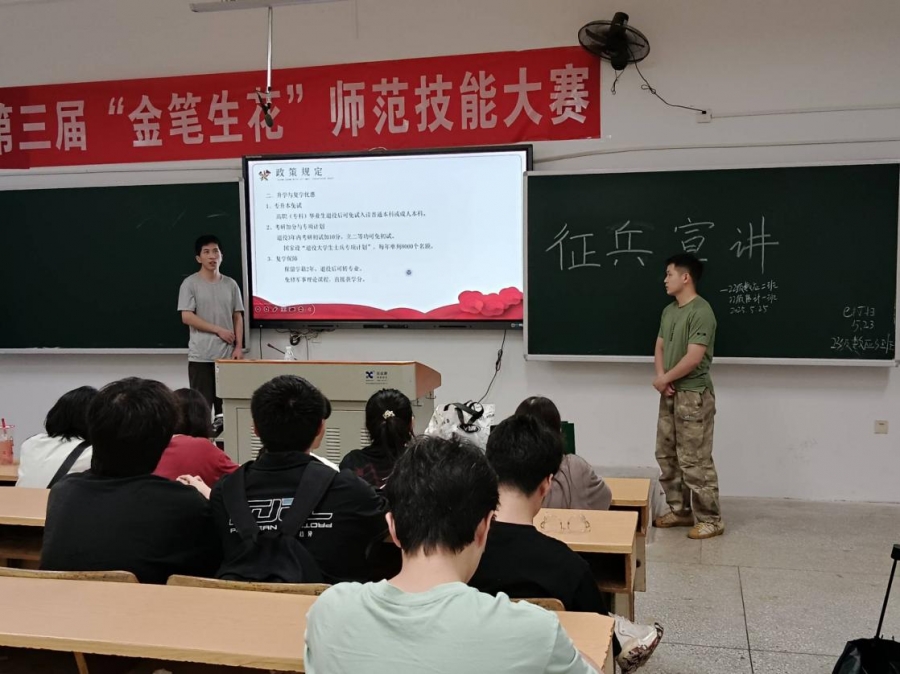 本网讯 为积极响应国家征兵号召,激发学生爱国情怀和投身军旅的热情,近日,各二级学院陆续开展征兵宣讲会,邀请退役大学生代表为学弟学妹宣讲征兵事宜。