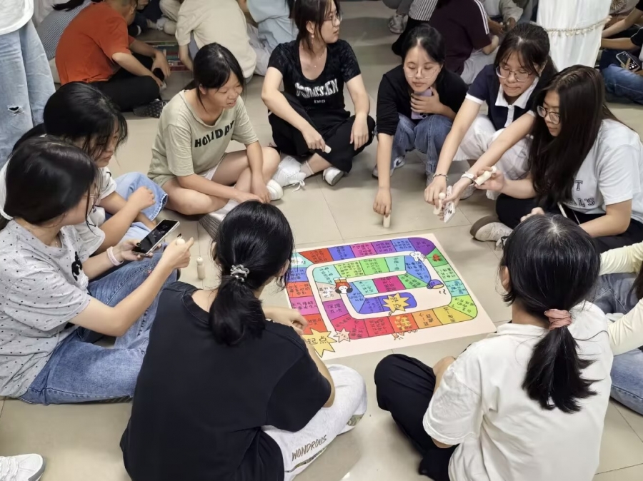 互动环节中,“猜成语”抢答比赛考验学生应变能力,强化团队协作精神;“心理飞行棋”以游戏化方式传递心理知识,帮助学生在趣味体验中提升心理韧性;压轴的“共绘笑脸”环节,学生通过笑脸墙集体创作,用画笔表达情绪、传递温暖,形成充满活力的艺术作品,将现场气氛推向高潮。活动尾声,全体参与者在笑脸墙前合影留念,为活动画上圆满句号。