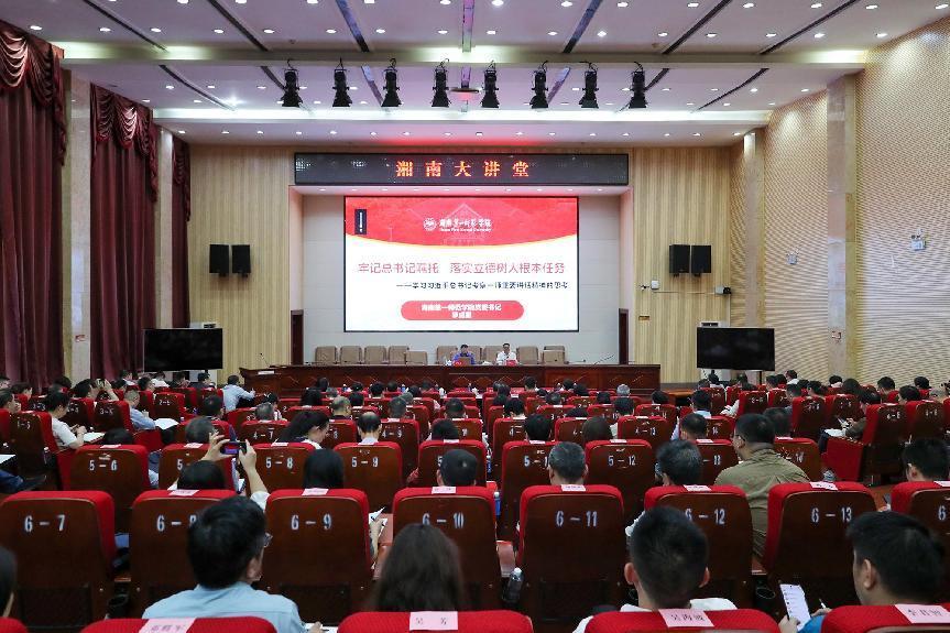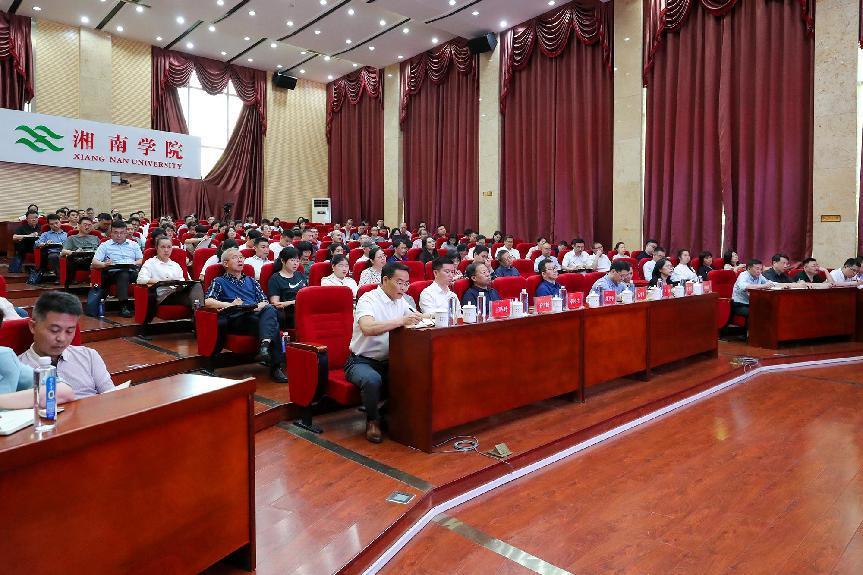 本网讯(通讯员 贺炜鹏 喻娜 摄影 佘伟灏 徐昊煊 刘万东)5月11日上午,“湘南大讲堂”第九期暨湖南省高等学校第148期处级干部培训班专题讲座在图书馆西报告厅举行。本次专题讲座邀请湖南第一师范学院党委书记、湖南省121创新第二层次人才、湖南省伦理学会副会长、博士研究生导师罗成翼前来讲学。全体在家校领导出席讲座,校党委副书记刘卫平主持讲座活动。