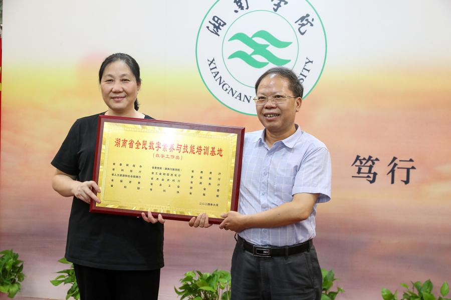 本网讯(通讯员 刘晓玲 摄影 佘伟灏)6月26日下午,湖南省全民数字素养与技能培训基地授牌仪式在贝博2号办公楼3楼会议室举行。校党委委员,副校长李和生出席活动并讲话;郴州市委网信办主任陈柳梅为贝博授牌。