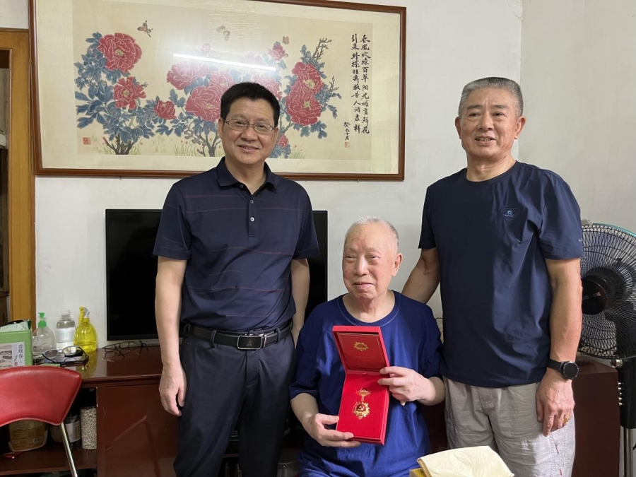 走访期间,校领导还为光荣在党50年的老党员颁发了纪念章。