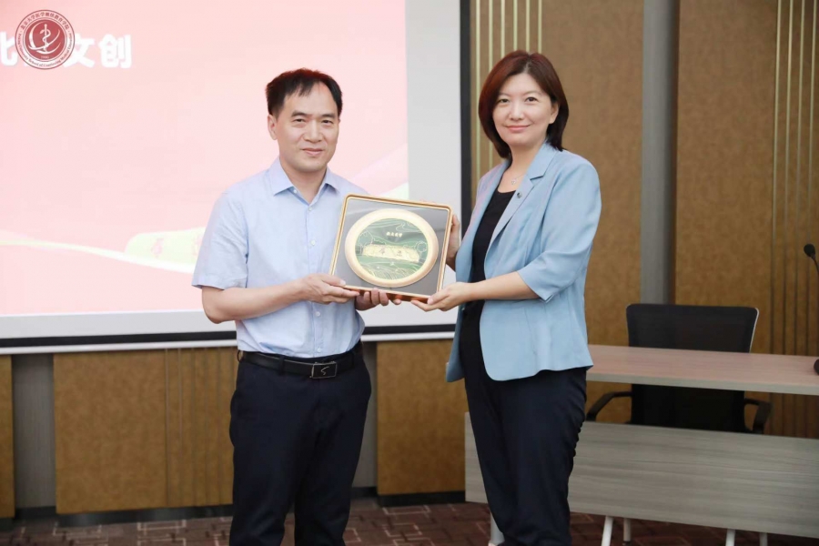 仪式上,张娟向雷小勇赠送北大文创纪念品。