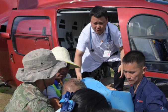 在各个受灾群众安置点,医疗队员们不畏艰难,为灾区群众提供了健康检查、疾病诊治、伤口处理等全面的医疗服务,同时积极开展卫生保健知识宣传,向受灾群众讲解水灾过后的疾病防治知识、环境消杀注意事项,免费发放了相应的药品。深入受灾最严重的八面山等危险区域逐户走访,为受伤村民进行治疗;联系直升机为伤情严重的村民进行转诊;协同资兴市第二人民医院对受伤灾民进行紧急医疗救治……在炎热潮湿的环境中,医疗队员们的衣衫被汗水湿透,但大家毫无怨言。