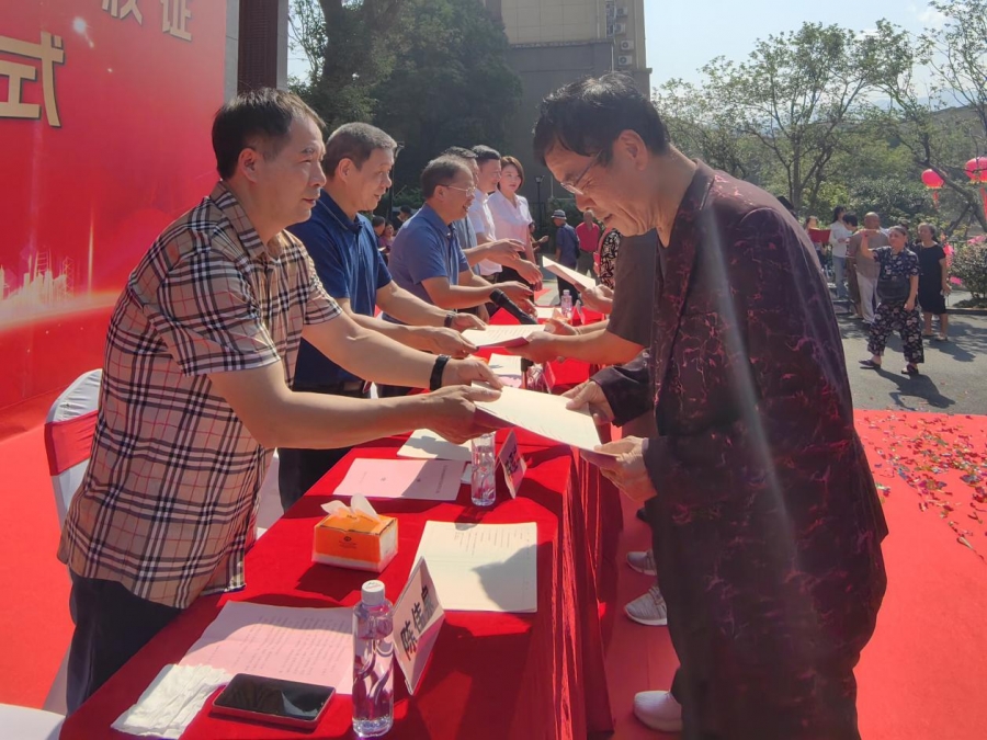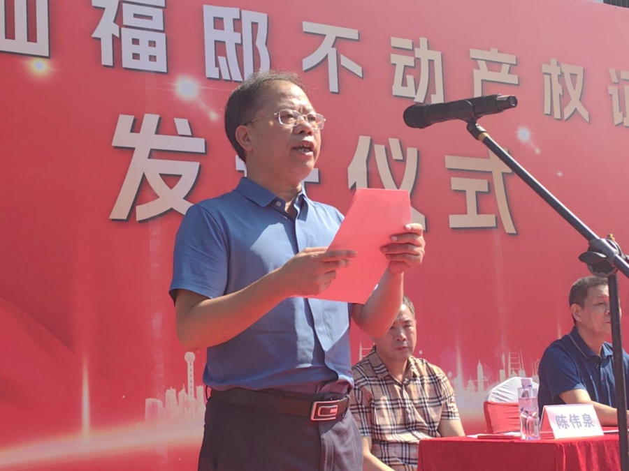 在热烈的掌声中,与会领导为业主代表颁发了不动产证,共同见证这一难忘的时刻。