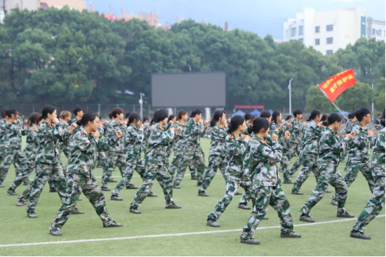 2024级新生和教官还带来了军体拳和擒拿、反恐训练汇演。“嗬!”“哈!”拳术连新生动作标准,身姿矫健,一招一式尽显气势磅礴;“卧倒!”“匍匐前进!”教官们勇于冲锋,行动迅速,成功擒获“敌人”,赢得现场师生的阵阵欢呼。
