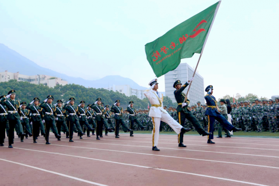 伴随着高亢激昂的《中国人民解放军进行曲》,在校旗的引领和军训团总指挥的指挥下,2024级新生方阵队迈着稳健的步伐,精神饱满地从主席台前走过,他们眼神坚毅,步伐铿锵,向全校展示着军训成果。