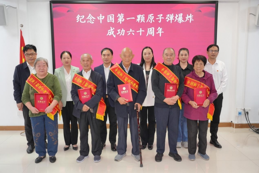 活动中,全体人员共同观看了我国第一颗原子弹爆炸成功纪录视频《东方巨响》,震撼的画面将大家带回到了那个震撼人心的历史时刻。雷小勇、王晖玲、余晓晖等领导向5位核工业基地建设者颁发了中核集团“原子弹爆炸六十周年”纪念章及荣誉证书,以表彰他们为我国核事业做出的卓越贡献。