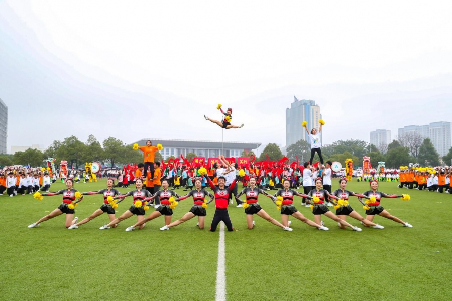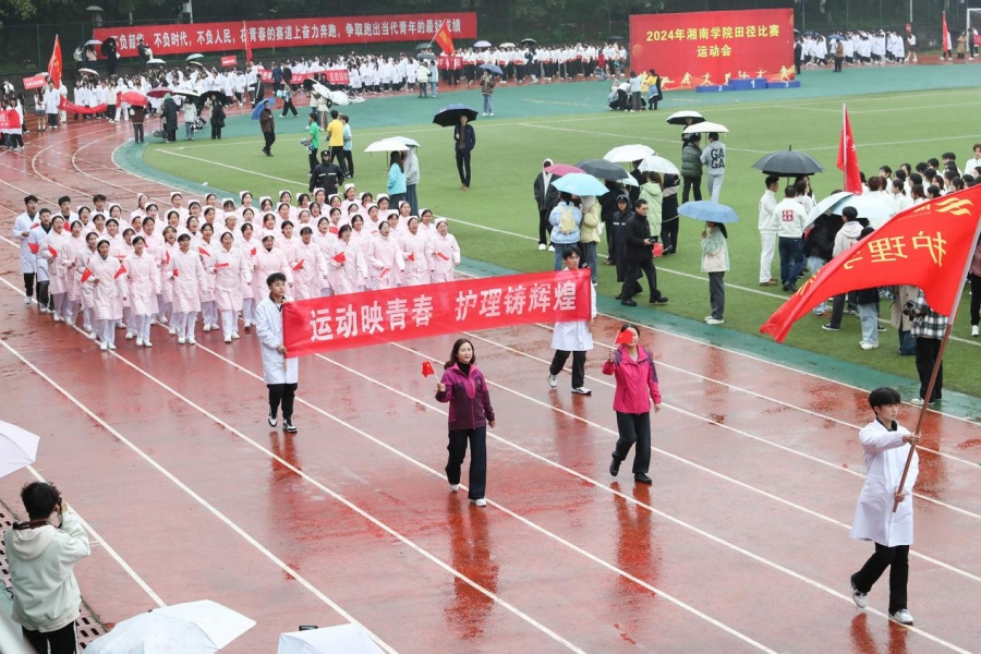 开幕式上,体育学院和音乐学院师生带来了精彩的节目表演。锣鼓表演《欢庆锣鼓》率先登场,鼓乐喧天,瞬间点燃运动会现场激情;舞龙表演《龙的传人》气势磅礴,振奋人心,激发了师生的自信自豪;啦啦操《青春湘南》整齐划一,动感明快,尽显湘南学子蓬勃朝气;舞蹈《吾馨舞悦》欢快明丽,展现了新时代青年奋发向上的精神风貌。