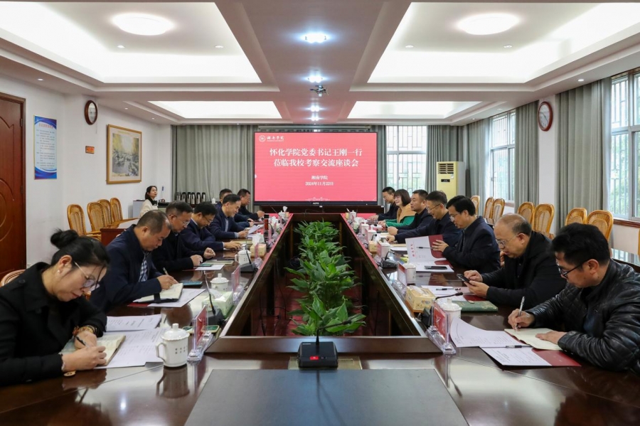 本网讯(通讯员 李冰婧 朱媛媛 摄影 佘伟灏)11月22日上午,怀化学院党委书记王刚,党委副书记、校长董正宇一行7人来我校考察交流。交流座谈会在2号办公楼3楼会议室召开,贝博党委书记邹宏如出席会议,党委副书记、校长雷小勇主持会议。