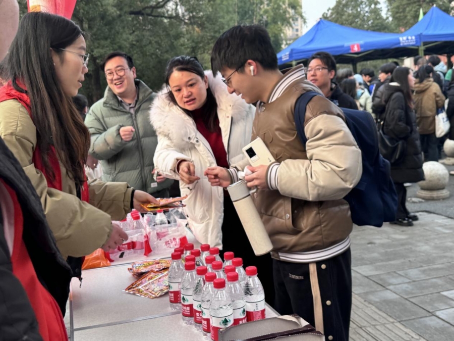 此外,临床学院还在考点现场设置了服务区,为考研学子发放矿泉水、牛奶、士力架、暖身贴、口罩等物品,全程护航、全心服务考研学子。