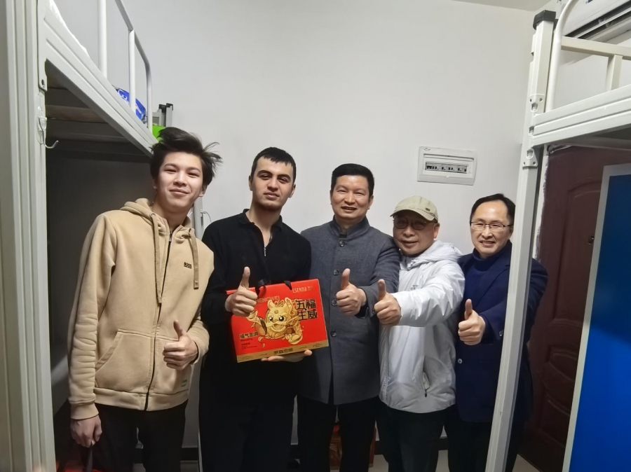 交谈中,王雪峰特别说道,留学生们在学习生活中如遇到困难,可以随时联系学校,学校也将认真听取大家关于校园管理的建议。留学生们接连用中文道谢。接过红火喜庆的拜年礼盒,吉尔吉斯斯坦留学生Petty感叹道:“这是我第一次在中国过年,学校准备的惊喜让我感受到了家的温暖。”