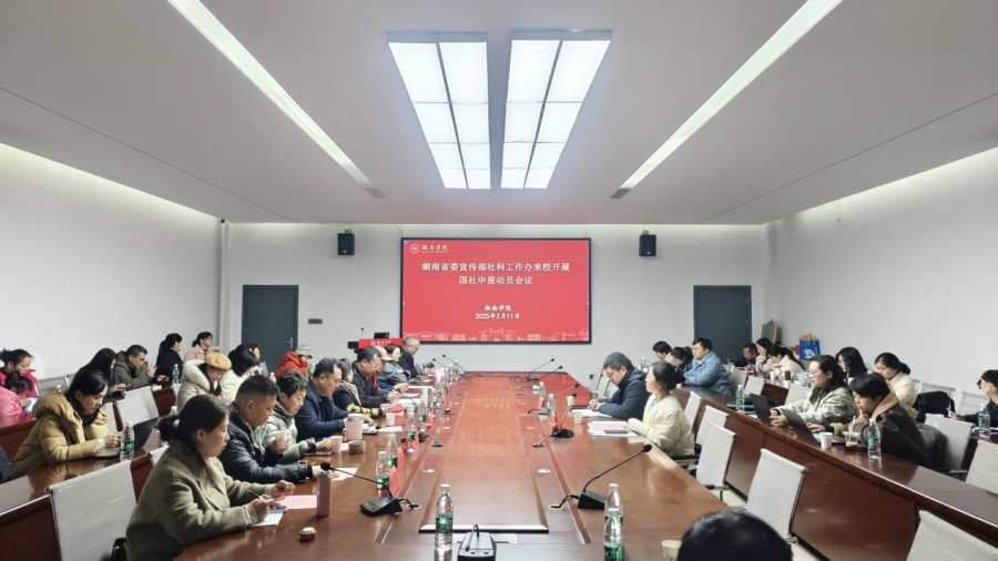 本网讯(通讯员 李阳)近日,湖南省委宣传部社科工作办工作人员来校指导2025年度国家社科基金项目申报工作,座谈会在美术楼101会议室召开,副校长贺莉萍出席会议并讲话。