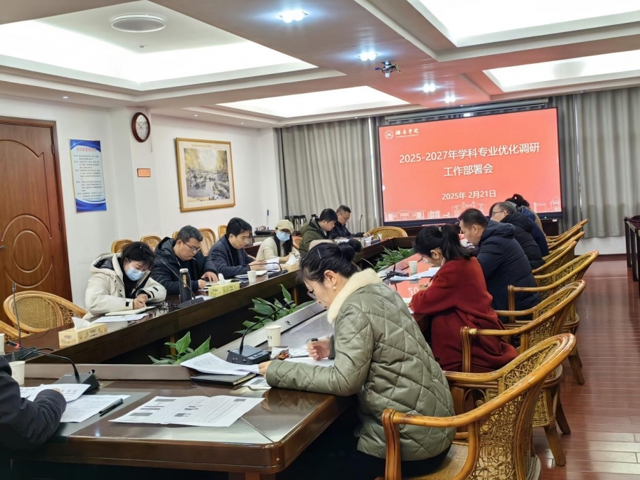 本网讯(通讯员彭献荣 汤银娟)为深入贯彻党的二十大和二十届三中全会精神,积极响应《湖南省高等院校学科专业优化实施方案》及《湖南省教育厅关于加快推进2025年高等院校学科专业优化工作的通知》,2月21日上午,学校在2号办公楼3楼会议室召开2025-2027年学科专业优化调研工作部署会,校党委委员、副校长高守平主持会议。