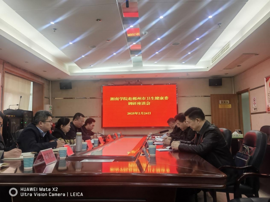 本网讯(通讯员 李阳)2月24日下午,副校长贺莉萍带队前往郴州市卫健委调研,了解郴州市医疗卫生行业的现状与发展趋势,以及行业对高等教育人才培养的需求。郴州市卫健委副主任齐胜堂主持座谈会。