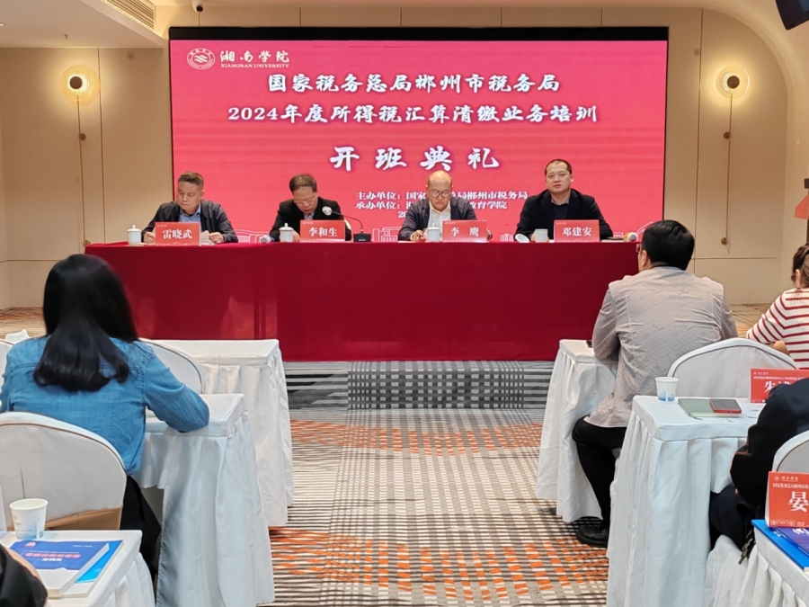 本网讯(通讯员 资易斌 陈军平) 3月24日,郴州市税务局2024年度所得税汇算清缴业务培训班在贝博开班,校党委委员、副校长李和生,郴州市税务局党委委员、总经济师李鹰出席开班典礼。