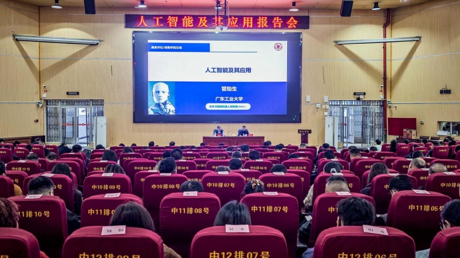 本网讯(通讯员 陈粲然 摄影 李时蘅)4月7日,广东工业大学特聘教授(二级)、博士生导师管贻生应邀来校开展题为《人工智能及其示范性应用》的学术报告,校党委书记邹宏如,党委副书记、校长雷小勇及在家校领导出席,校党委委员、副校长高守平主持。