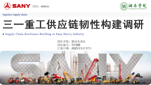 “链动未来队”由陈检龙、蒋依萍等五名学生组成。历经三个月的精心筹备,深入三一重工企业一线,对其物流与供应链现状展开全面细致的实地调研分析。团队成员运用专业知识,深度剖析行业痛点,最终撰写完成《新质生产力背景下三一重工物流与供应链智能转型研究》调研报告。报告以扎实的数据、创新的视角和可行的解决方案,赢得了企业和大赛评委的一致认可。