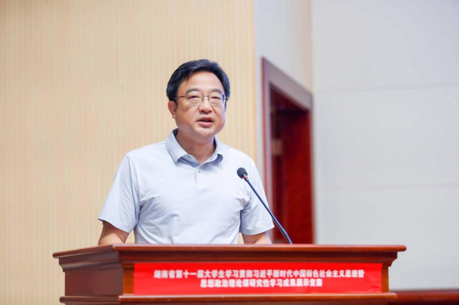 颁奖仪式上,余伟良代表中共湖南省委教育工委、省教育厅对突出重围、进入决赛的各参赛队伍表示热烈的祝贺,对到场的各位领导、专家表示诚挚的欢迎,对承办单位bb贝博艾弗森官网的精心组织与辛勤付出表示衷心的感谢。他充分肯定了17支队伍的优秀表现以及评委们的高水平的点评。“希望这个比赛可以成为同学们人生中一个美好的记忆,也期待明年能有更多的同学参与到下一场竞赛中,擦亮湖南省大学生思政课研究性学习成果展示赛品牌。”他热切地说。