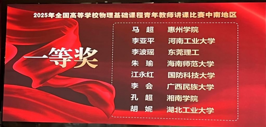 贝博教师荣获2025年全国高等学校物理基础课程青年教师讲课比赛中南地区一等奖