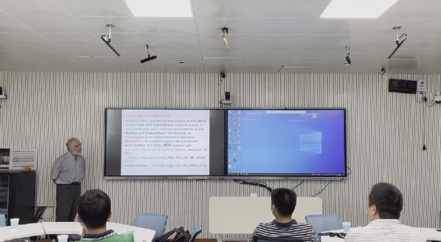 28号下午,Boris A. Malomed与同行的黎永耀和陈桂华等人与物电学院量子物理课题小组的老师对非线性和孤子的相关问题进行了进一步探讨,并且提出了有价值的解决方案。Boris A. Malomed在听完量子课题小组关于孤子问题的一些研究成果后,对本小组的工作给予了高度的肯定。
