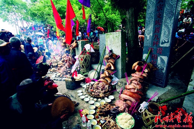 生活在“南岭走廊”上的很多民族信奉万物有灵和祖先崇拜,民间的祭祀活动丰富多彩。人们通过参与活动,不仅实现精神寄托,而且还达到娱神、娱人、增强凝聚力的目的。在科技不发达的年代,生产力水平低,人们对自然万物的认识还不充分,对于各民族的先民来说,他们相信上天和祖先具有超凡能力来护佑他们,只要虔诚地祭祀,他们生活的地方就能风调雨顺,他们的粮食就能丰收,他们就能过上平安的日子。
