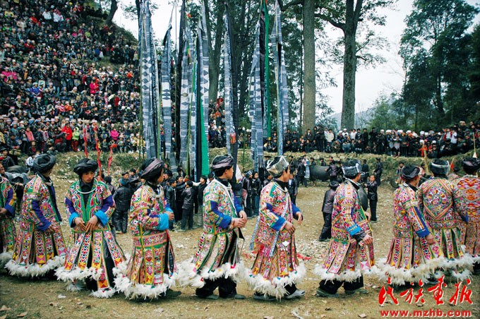 在各民族历史发展的进程中,由祭祀祖先、祈求丰收的活动衍生出许多节日,如瑶族盘王节、苗族牯藏节、布依族二月二、仫佬族二月春社、水族敬霞、毛南族分龙节等。在一定意义上,节日就像一个民族文化的基因库,民族的传统文化和精神在节日里传承。 “南岭走廊”是一条五彩缤纷的节日走廊,每一个节日都是民族精神传承的圣坛,每一个节日都是民族服饰的T台,每一个节日都是民族歌舞的海洋,每一个节日都是民族团结的聚会……