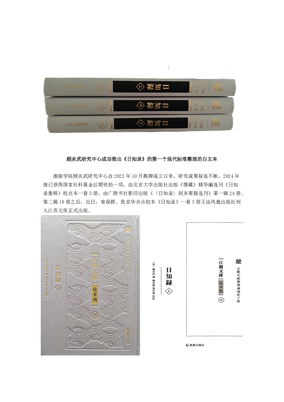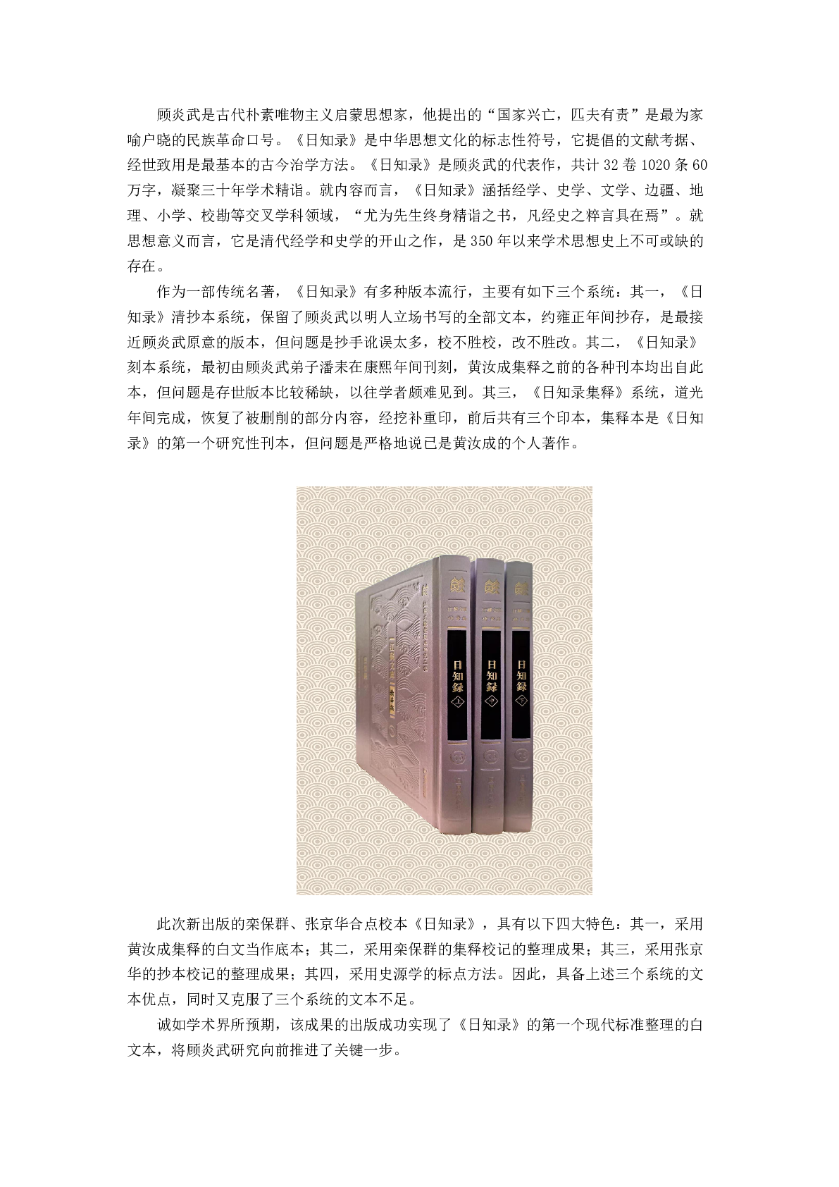 顾炎武研究中心成功推出《日知录》的第一个现代标准整理的白文本