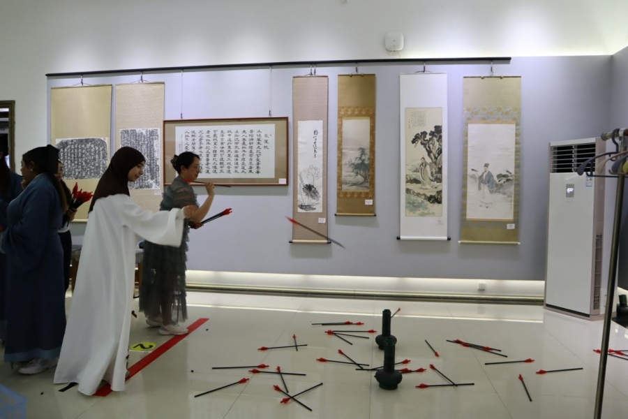 大家通过“清莲香草共祭先贤”等游戏互动环节,如丢沙包、趣味套圈、投壶、竹编挂件制作、签名留言等形式,以清新雅致的方式,表达对屈、周二贤的深切缅怀与追思。