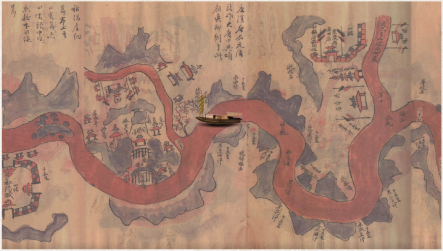 2.《北使程图》,今存抄本一种,自越南至中国京城的使程地图集,本书收188幅朱墨两色彩图,有昭德台、幕府营、燕京等地,每幅皆注有地名、历史遗迹。巴黎馆藏编号MF.53。